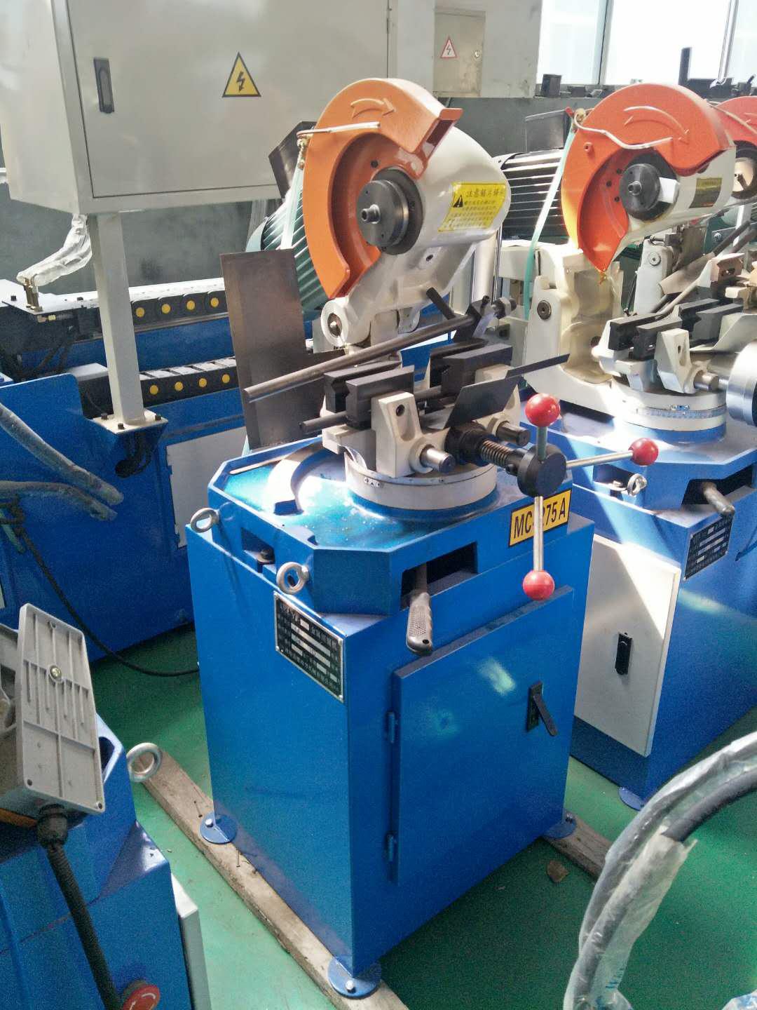 手動金屬圓鋸機,是一種半自動的鋸切機床,是本公司在引進國外技術加以創(chuàng)新和發(fā)展的新品,產(chǎn)品性能達同行業(yè)先進水平,能鋸切各種截面形狀的普通鋼,不銹鋼,銅,鋁等金屬型材,尤其是鋸切各種管材最為理想。鋸切時只需上供進出料,其中工件的夾持,松開,進刀以及鋸切完畢后退刀均由手動控制完成。切口可調(diào)節(jié)各種角度,正切、斜切皆可,滿足客戶要求。